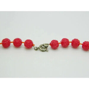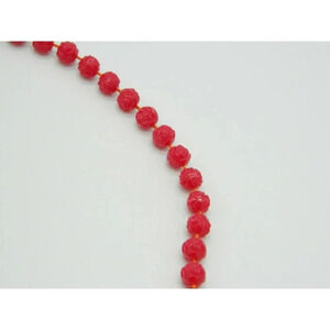 Faux Pink Celluloid Flower Bead Beaded Gold Tone Vintage Choker Necklace
