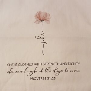 Canvas Tote with Flower and Scripture for Women Proverbs 31:25