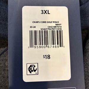 Brand new Chaps Golf polo shirt. Dark blue color with a 3-button placket. Short sleeve. Size 3XL. Still has tags on it.