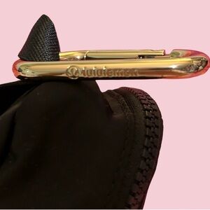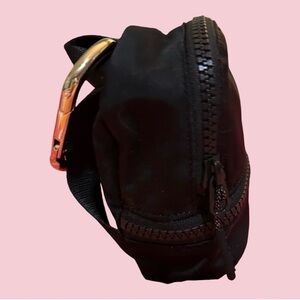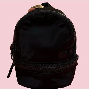 NWOT! LULU-LEMON MINY BACKPACK BLACK WITH GOLD ZIPPER & CARBINU IN GOLD W/ NAME.