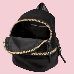 New Without Tags. The super Darling bag sold out in every store and his hard to come by. It is made by Lululemon. It’s all black with gold hardware. It’s the City Adventure backpack called Nano in mini size. It’s 3.3” x 2.3”x 4.7”.