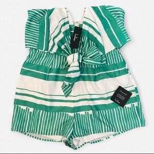 Lulus Delphi Green and White Striped Tie-Front Strapless Romper - M
