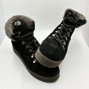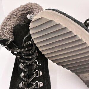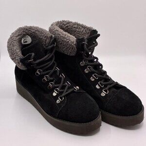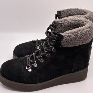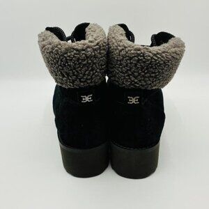 SAM EDLEMAN Franc Faux Shearling Trim Hiking Black Suede, Women Size 6, $170 NEW