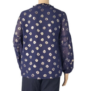 Lilly Pulitzer Silk Giana Top in True Navy Seagrass Metallic Clip Chiffon