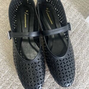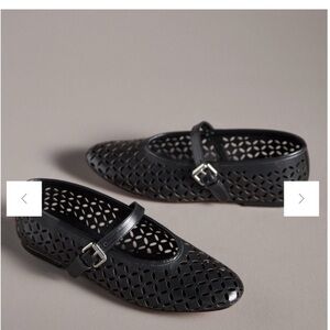 Anthropologie Black Laser-Cut Mary Jane Flats with Buckle