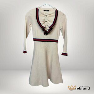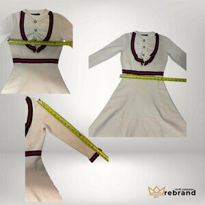 Preppy Ruffle Collar Knit Dress Cream Red Navy Stripe S