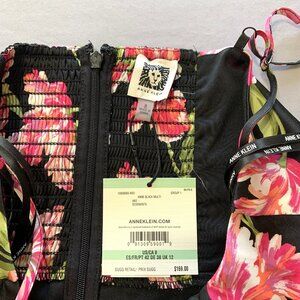 NWT Anne Klein Women Black Pink Floral Tiered Sleeveless Maxi Dress Prom Size 8