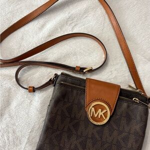 Michael Kors Dark Brown and Tan Crossbody Bag