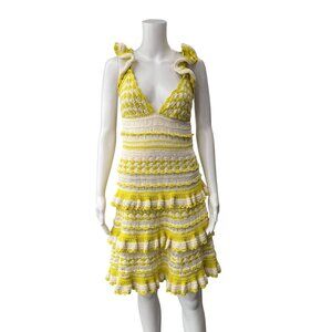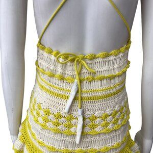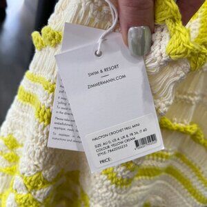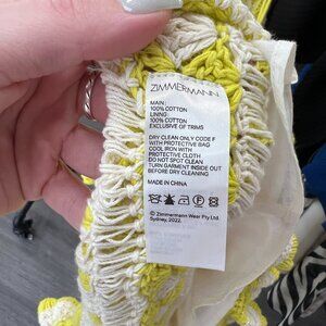 $795 NWT Zimmermann Yellow White Crochet Halcyon Frill Mini Dress sz 4/IT 40