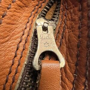 Color: Brown leather exterior with matching wrist strap and gold tone hardware