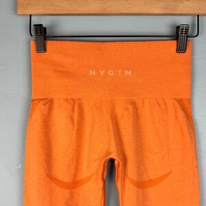 NVGTN Women's Orange Small Contour Seamless Cropped Leggings Skinny Gym Nylon