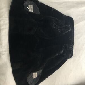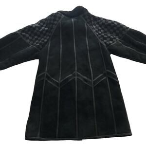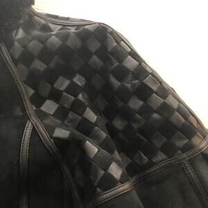 VINTAGE Toppolino Fine Leatherwear Black Shearling Lined Coat XS Check Shoulder. Made in Turkey. Beautiful chess board/checkerboard shoulders and striking angular/geometric trim. Trying this on, I believe it can fit XS-S.