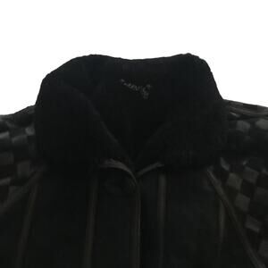 Toppolino Black Coat Fine Leatherwear Shearling Lined XS Checkered Vintage