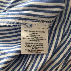CLEARANCE PRICE: In fresh stripes, this top flaunts a bohemian-chic side with tasseled ties at the neck and fluttery tiers at the sleeves. Split neck. Short sleeves. Shirttail hem.