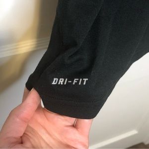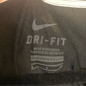 Very good preowned condition. Short sleeve. Solid black with textured blue graphic. Nike swoosh on left upper chest. Dri-Fit line.