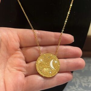 18k gold plated stainless steel sun, clouds & moon pendant necklace