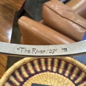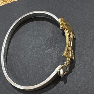 Elegant gold and silver bangle bracelet featuring a unique design. Perfect for adding a touch of sophistication to any outfit.