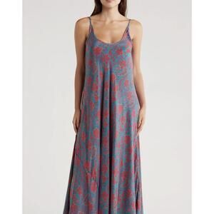 NWT! La Fiorentina Printed A-Line Maxi Dress in Blue/Pink Size Small