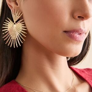 Throne gold starburst heart shaped fan earrings; nwot