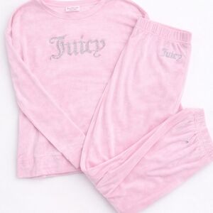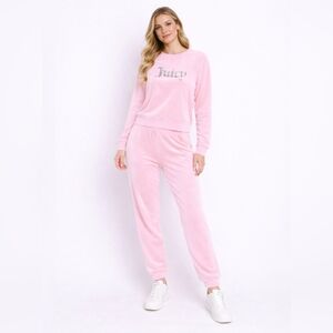 Juicy Couture Tracksuit - Pink Velour Rhinestone Logo Loungewear Set (L + XL)