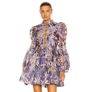 Zimmermann Purple Floral Long Sleeve Dress Size 0