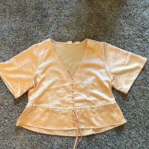 Flowy, flattering, and easy to throw on, this Short-Sleeve Lindy Blouse is relaxed enough to wear every day, and polished enough to dress up. It features a flattering V-neckline, a button-up front, a cinched waist and flowy short sleeves.