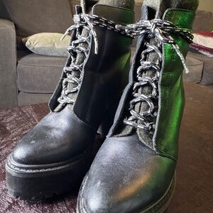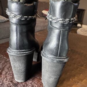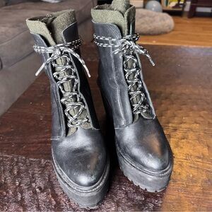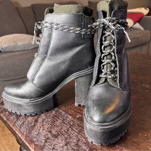Stylish black heeled boots with lace-up design. Perfect for a bold look. Platform comfortable to wear. Lightly worn.