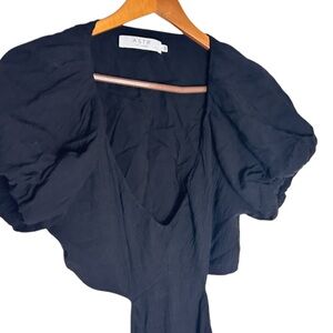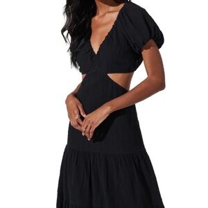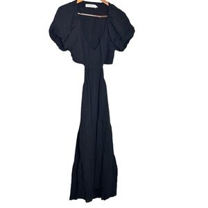 ASTR Puff Sleeve Cutout Gauze Midi Sundress In Black Size L So Cute Linen Blend