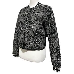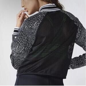 Fabletics Cropped Tia Bomber Jacket Mesh Back Black White Activewear Size S