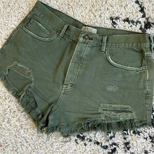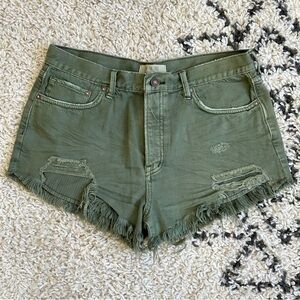 We The Free x Free People Loving Good Vibrations Cut Off Green Jean Shorts, 30