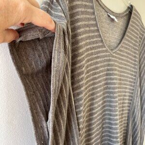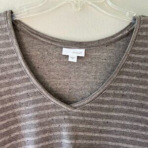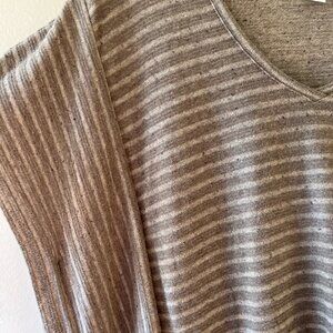 J.Jill Pure Jill Sz L Striped Poncho Pullover Heather Brown V Neck Kimono Sleeve