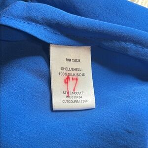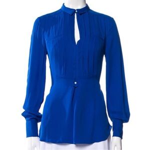 Halston Heritage Cerulean Blue Pleated Keyhole Silk Blouse