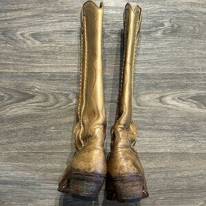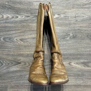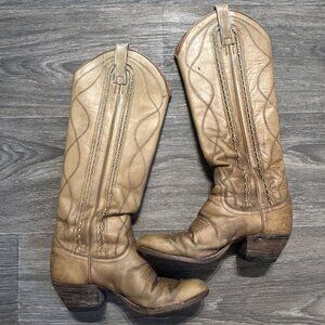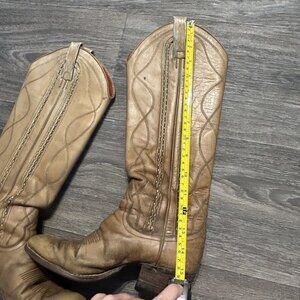 Vintage Dan Post Size 6 C Cowboy Knee Boots Made in Spain Tan Braided 4115