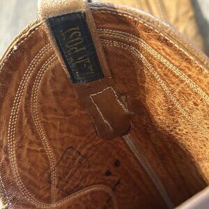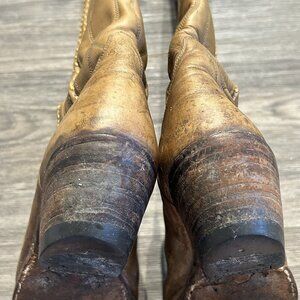 Scuffs and wear on leather, soles show significant use. TLC and cobbler needed to repair but these broken in vintage boots are worth the repair. Priced with this in mind.