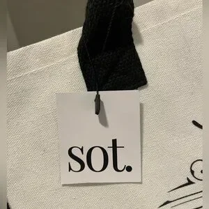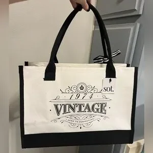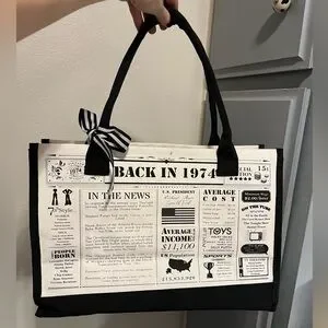 NWT “1974 Vintage, Back in 1974” Large Canvas Tote Bag Black & White Bow Detail