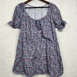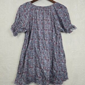 Natural Life Sienna XS/S 100% Cotton Gauze Mini Dress Blue Floral Print Keyhole