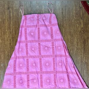 Ready for spring! Here is a stunning NWT Petal And Pup Pink Soph Strapless Maxi Dress in a size Medium. Never been worn, wrinkled due to storage. Long dress with a hidden size zip closure, 100% cotton and lined. Hand wash only.
