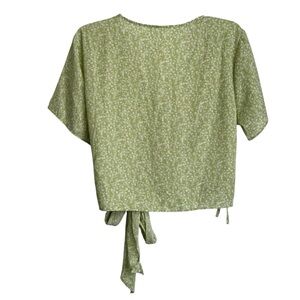 Lush NWOT Sage Cream Floral Wrap Top Summer L