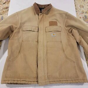 Carhartt Chore Jacket Mens 48 Regular Tan Quilted Line Full Zip Canvas Grunge