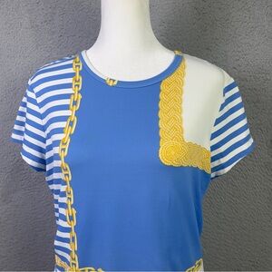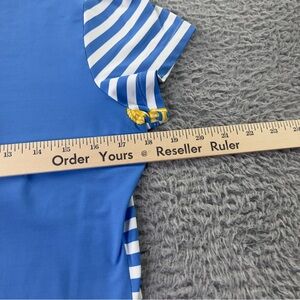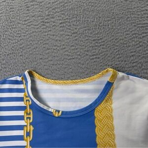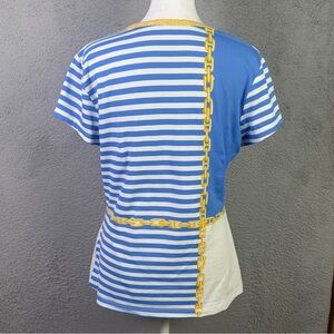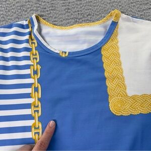J Mclaughlin Top Womens Medium Blue White Striped Catalina Cloth Short Sleeve