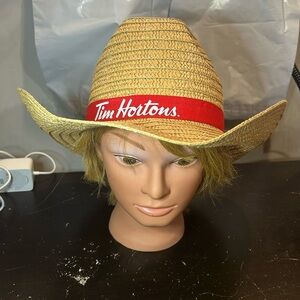 Tim Hortons Straw Hat Cap Brown Fits Small-Medium Heads Coffee Staff Uniform