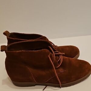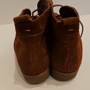 Elegant brown lace-up boots by Ralph Lauren. Suede finish for a stylish look. Ideal for versatile wear. Very nice used condition. Minimal wear. A great pair of Ralph Lauren Malva Brown Suede Boots. Size 7B.