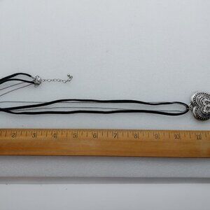 black cord with silver tone chain