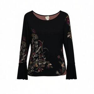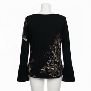 Black Floral Bell Sleeve Knit Sweater Soft Stretch Top | Women’s M (8–10)