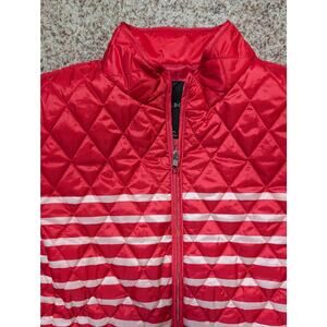 TALBOTS puffer Vest, size XL, Red/Coral & white stripe, classic styling