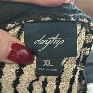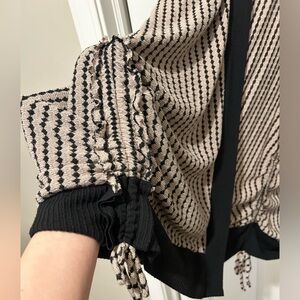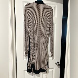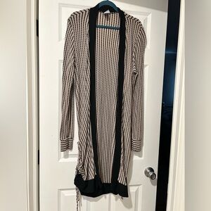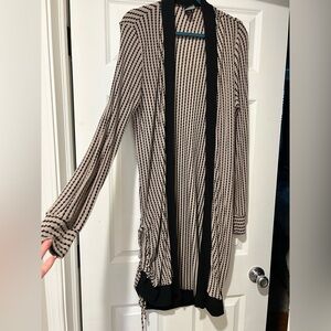 EUC Daytrip Open Front Black Taupe Ruched Striped Stretch Cardigan