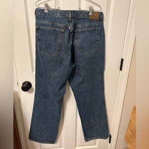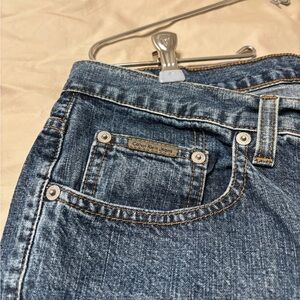 Classic medium-wash Calvin Klein jeans featuring durable 100% cotton denim and a relaxed straight-leg silhouette. These are great vintage-style jeans that work for casual outfits, oversized sweater looks, or cuffed with sneakers or boots. 90s style straight leg
