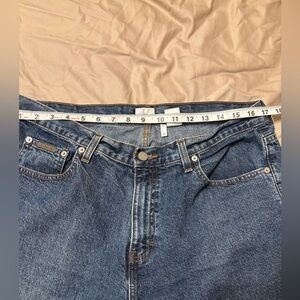 calvin klein jeans, ck denim, straight leg jeans, vintage style denim, mom jeans, classic denim, 90s denim, cotton denim, size 14 jeans, relaxed fit jeans