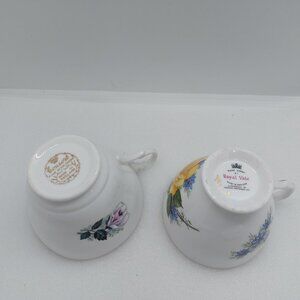 2 Vintage Tea Cups & Saucers Royal Vale & Consort - Yellow Rose White Pink Rose