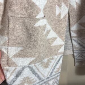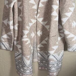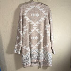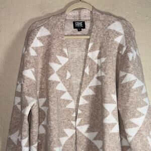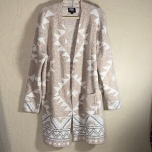 Frye the cozy cardigan long length open front geometric print size XXL. Cream and white. Cabincore. Soft cozy luxury. Minimalist. Plus size.